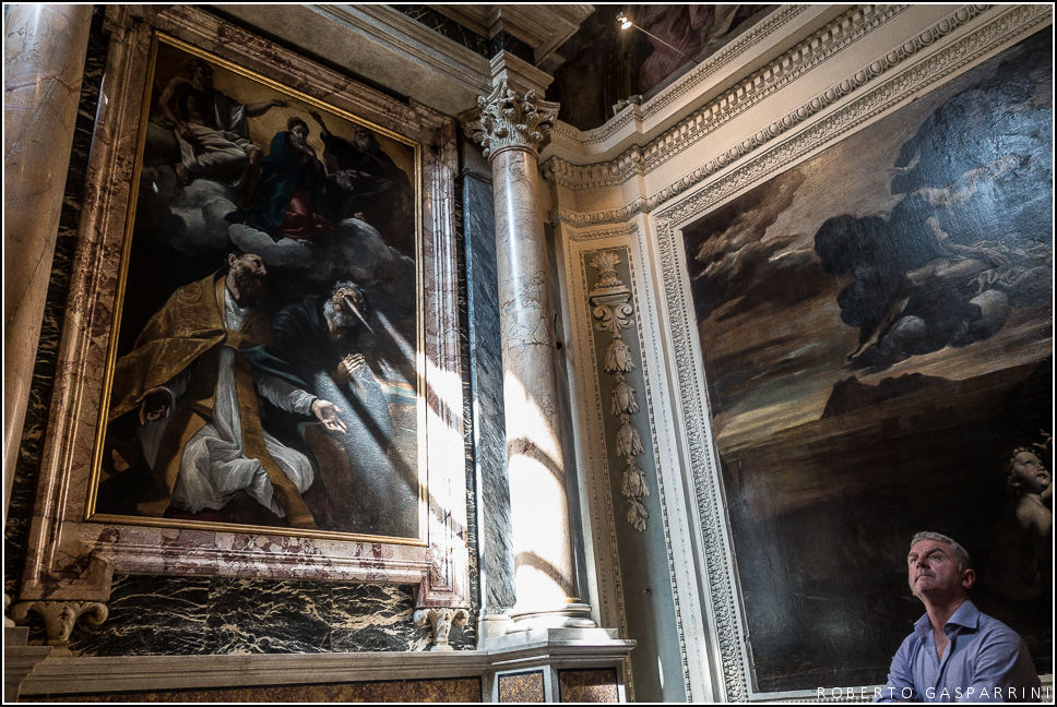 Lo sguardo dell'uomo verso l'alto come quello del religioso con saio scuro del dipinto.Interessante il raggio di luce. Ok!
