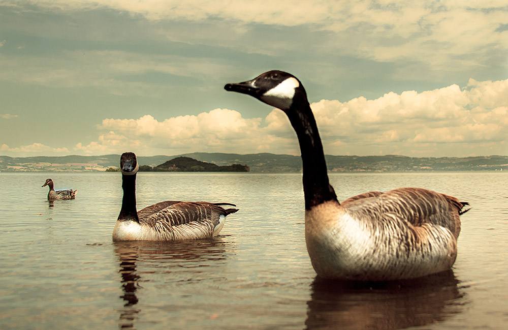 Qualche problemino per i bianchi fuori gamma ed un f4 insufficiente per portare la nitidezza fino all'oca in primo piano. Una dominante giallina, che può essere anche voluta, pervade l'immagine.