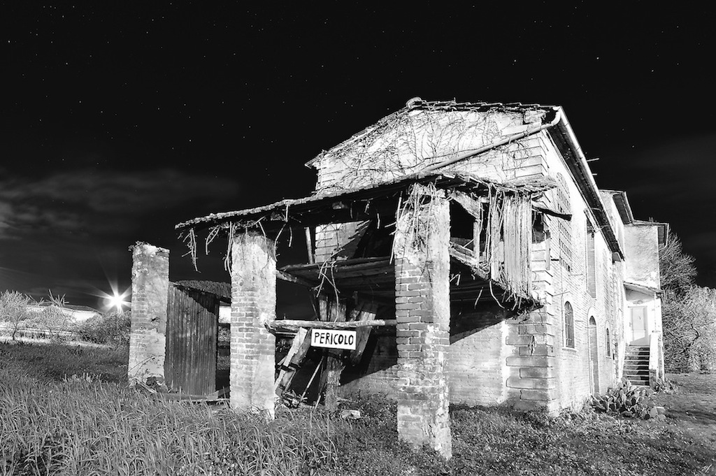 Esposizione (a tratti fin eccessiva) e punto di ripresa rispetto alla provenienza della luce (lunare?) eliminano quasi del tutto l'effetto notte delegandolo al solo cielo stellato. Nel dubbio che la scelta del b/n qui non fosse la migliore sarebbe interessante un confronto con la versione a colori.