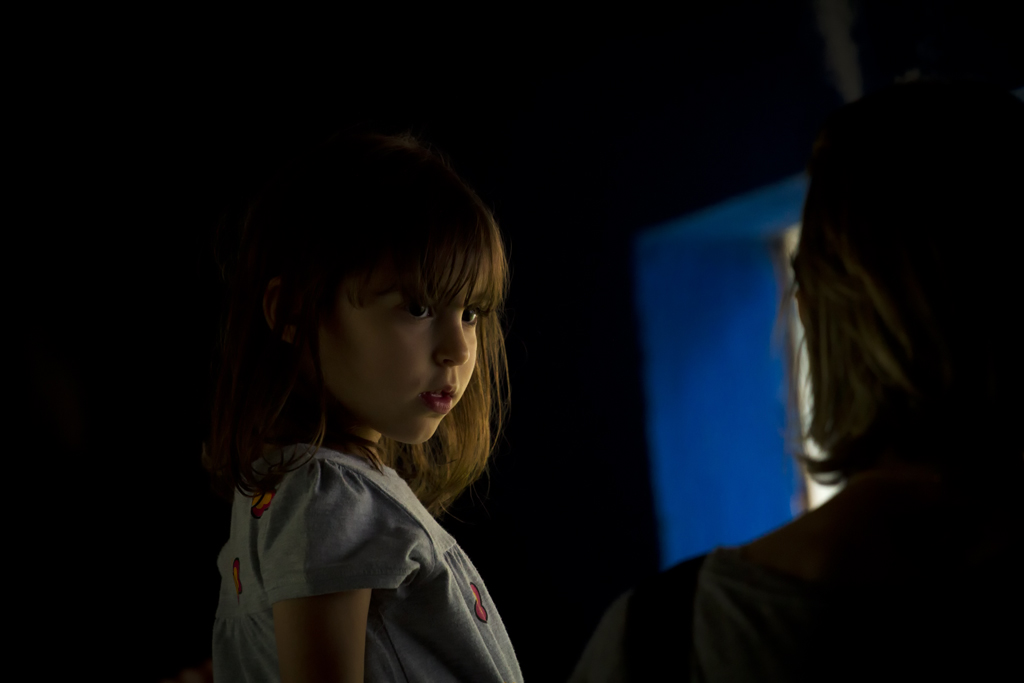 Bravo per aver sfruttato il passaggio delle persone per schermare la finestra e guidare la luce sulla bimba.