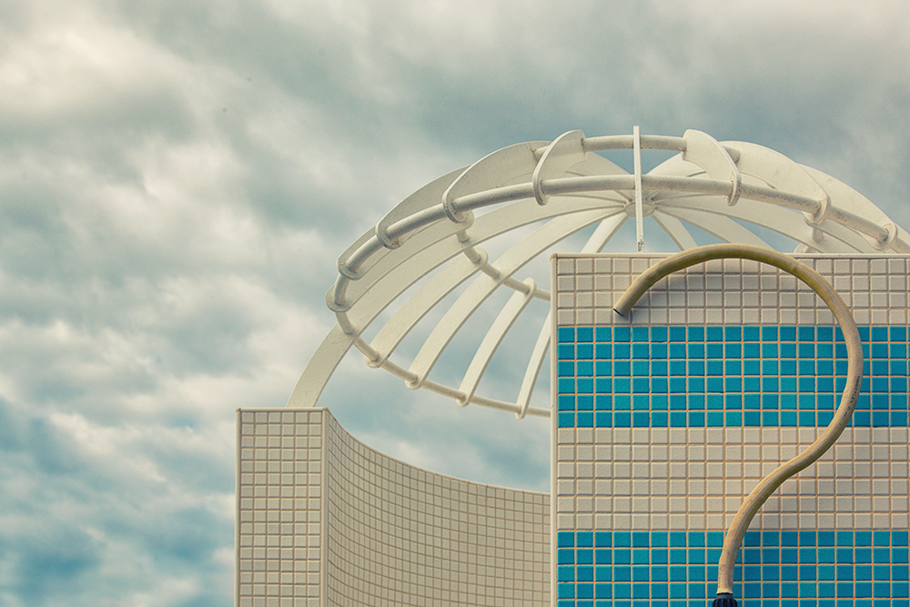 Le tinte bianco azzurrine tenerissime del piastrellato, a fare il paio con le tonalità del cielo, quasi in un insolita continuità! E tutto ciò con queste linee architettoniche insolite, valorizzate dal punto di vista che racconta ma non svela completamente. Fra le preferite.