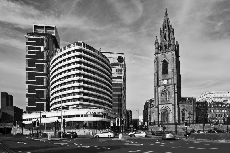 Una bella foto , la visone di due architetture cosí diverse messe in relazione in questo frame , la trovo una gran bella idea , anche l'aver scelto il b/n ......