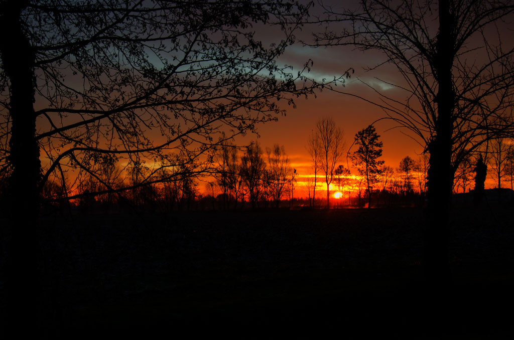 | C'è un terzo della foto dove non c'è nulla,per cui la base si potrebbe assottigliare o tagliare,resta una cornice creata dai due alberi ai lati,col sole come punto focale,cornice un po' trafficata per l'intreccio dei rami,c'è da dire che spesso il disegno dei contorni in controluce puo' essere interressante. |