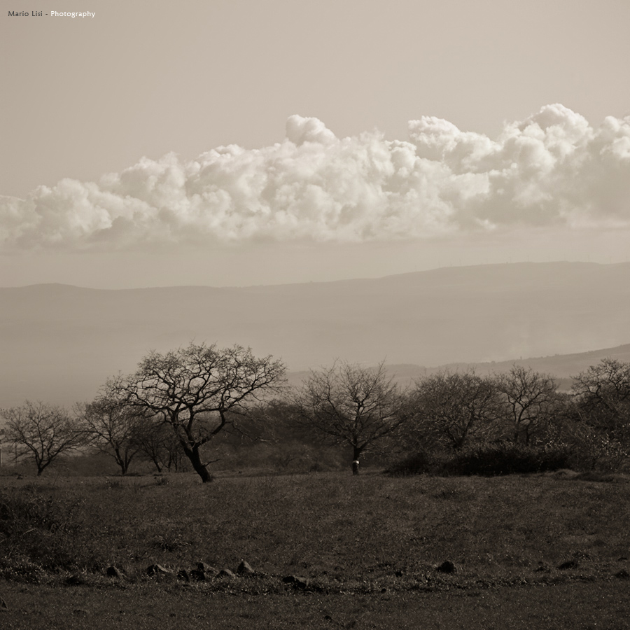 Una premessa con versi capolavoro, che probabilmente ti hanno fatto agire per questo scatto. Il resto è la lieve malinconia fra le pieghe di una felice scelta di viraggio per queste nuvole e queste chiome.