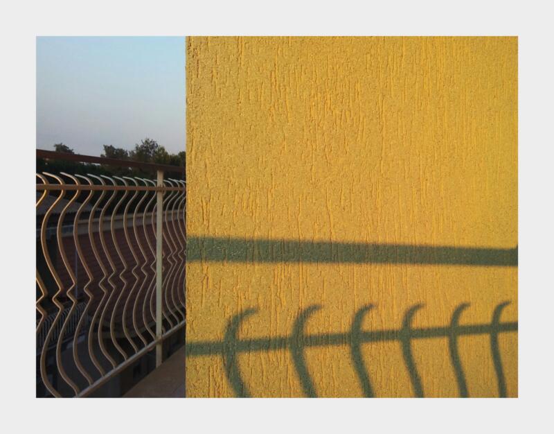 Una normalissima recinzione metallica prefabbricata, un muro con un comunissimo intonaco plastico e un contesto piuttosto anonimo, mettiamoli insieme e otteniamo una foto assai gradevole e interessante...