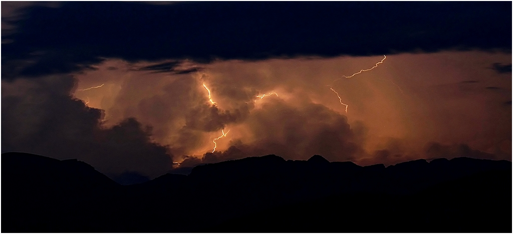 Questa estate non è certo stata avara di spunti per scatti di questo genere. La particolarità di questo (che forse non si nota) è il fatto che la parte scura sopra era un bel cielo stellato.