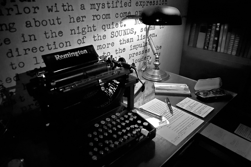 penso che lo scatto sia stato pensato e curato, quindi avrei preferito una diversa disposizione degli oggetti sulla scrivania ed avrei evitato il riflesso accanto alla macchina da scrivere