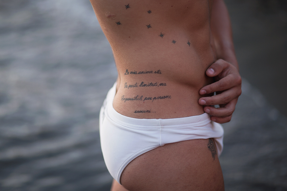 Purtroppo il tuo taglio, Mario/Webmin, seppure incisivo non mi piace; i tatuaggi si completano, la frase più la rappresentazione della costellazione.