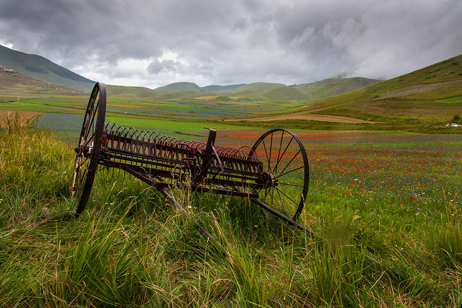 Una buona composizione/scatto, che a parte la macchina bianca sul filo dell'inquadratura, forse si poteva allargare un po' di più e stringere meno sull'attrezzo agricolo.....