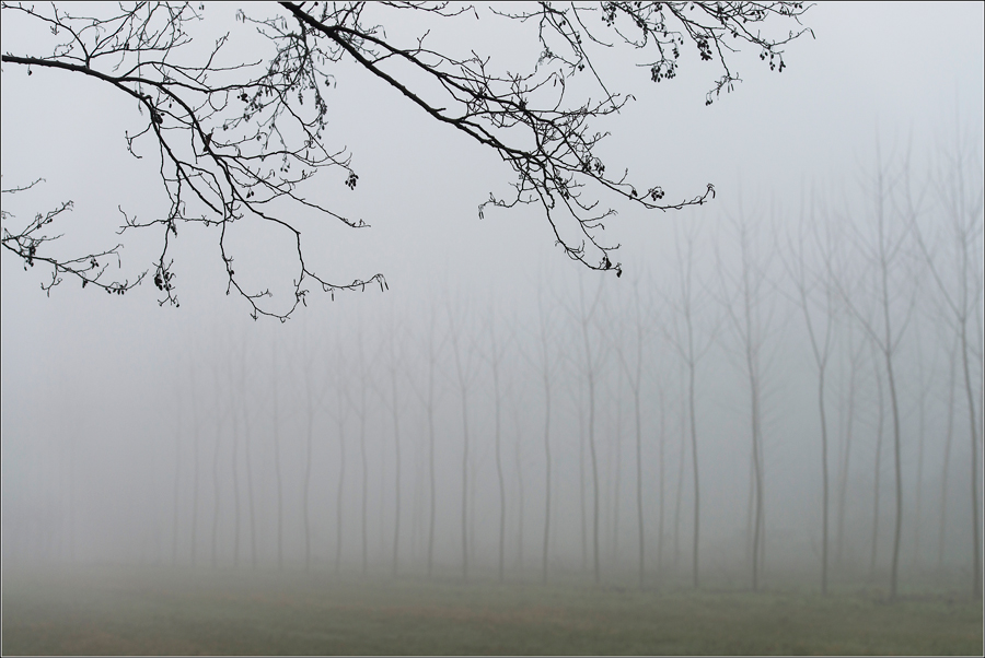 L'indefinita bellezza della pianura padana. Elementi arborei che la nebbia cela ai più ma che l'occhio del fotografo scruta, vede ed interpreta...