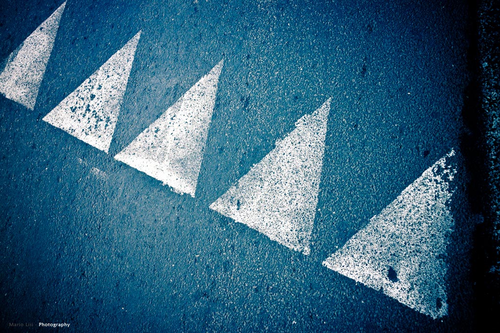 Bella l'interpretazione di questi trinangoli in scala,è interessante notare come l'attenzione sia posta agli estremi,dal triangolo piu' grande e come il motivo si interrompa bruscamente per spostare l'attenzione sulla figura blu con la stessa forma alla base,alla fine si nota anche il vertice formato dalle ombre.  |