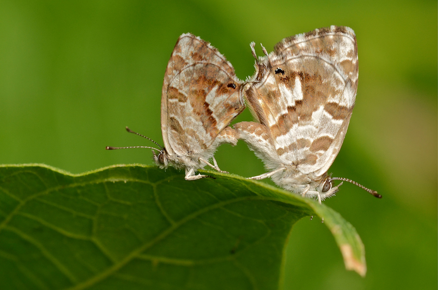 Le piccole farfalle dei gerani si accoppiano sulle foglie dei fagiolini. E' la natura che trionfa!