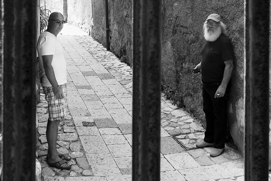 No non sono posati, appena gli ho puntato la macchina fotografica contro credevano che stessi fotografando qualcosa nel vicolo dietro e si sono appoggiati con le spalle al muro; certo un po di fortuna l'ho avuta