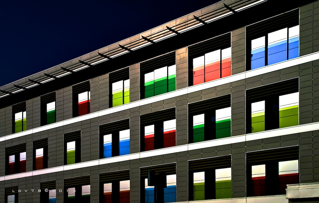 grazie a tutti dei complimenti e dei consigli, il soggetto mi attirava parecchio così come la luce riflessa, purtroppo non tutte le condizioni erano perfette e son dovuto andare parecchio sotto l'edificio per schivare gli alberi presenti ma non potevo evitarli tutti (questo è il motivo del crop in basso a sinistra), mentre in alto a destra ero troppo sotto e per mantenere un minimo di verticalità è partito l'altro taglio