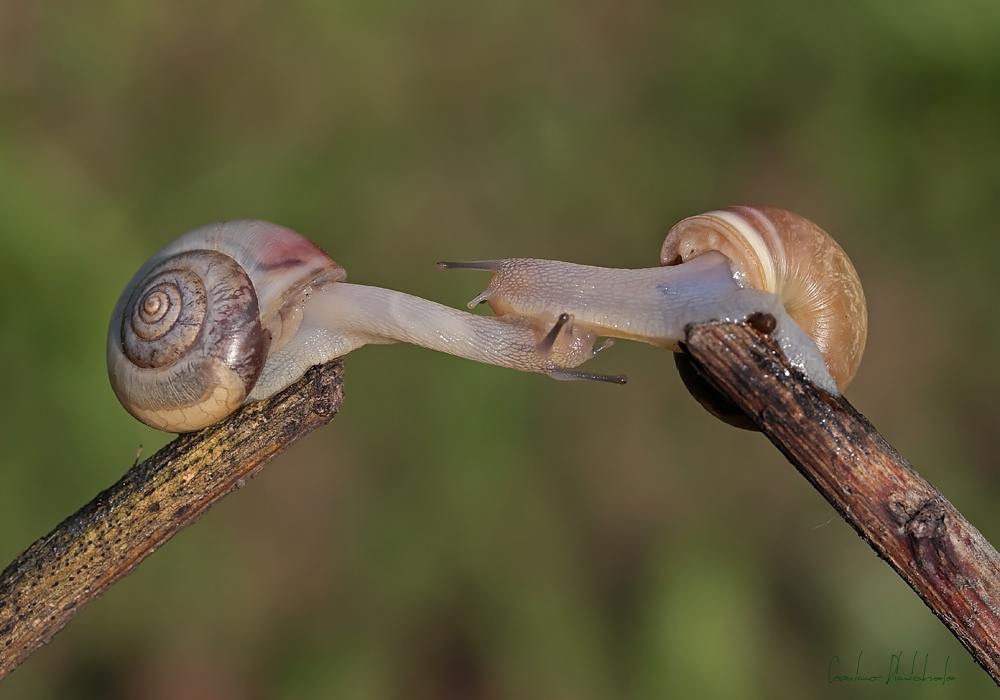 Un bacio 'pericoloso' molto bello...tecnicamente non so che dirti: a volte ho provato a fotografare chiocciole in situazioni simili, avendo la conferma che 'sembrano' lente ma sono molto veloci in realtà...l'effetto finale mi piace molto  |