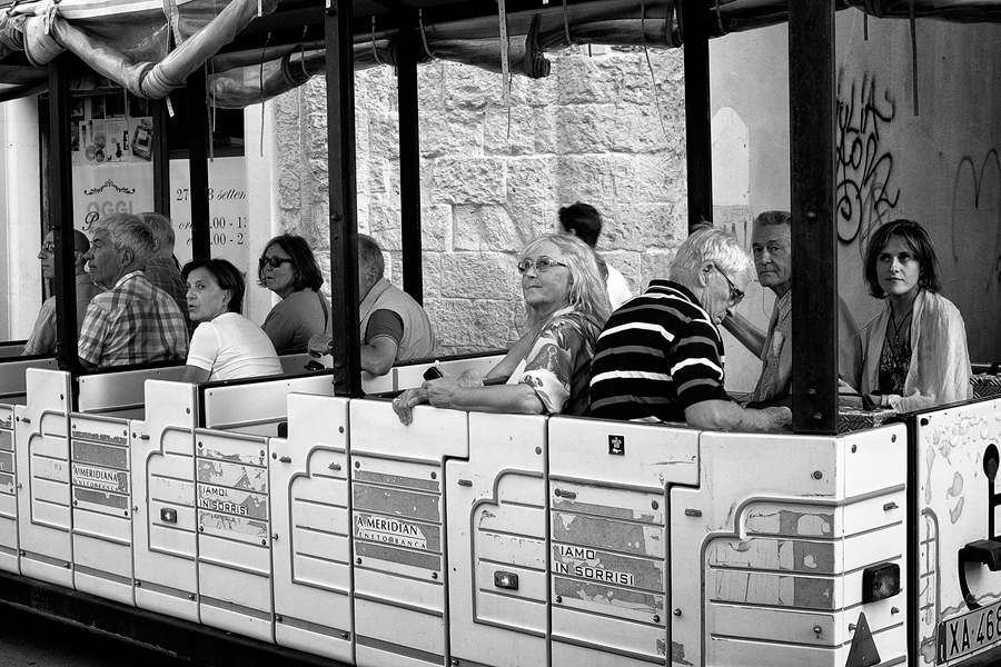 Per contro, includendo anche il vagone davanti si rafforza l'idea del gruppo, in questo caso ben piu' numeroso, intento a guardare da una parte e...e qui il disinteressato un po' mi sparisce. Devo ammettere che poi lo si trova senza fatica eh, pero'...non so.