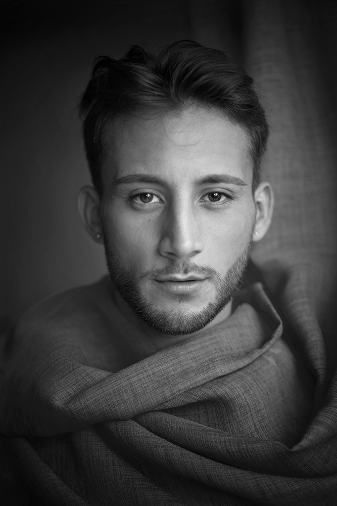 Nino grazie ad un'amicizia comune ha visto le mie foto su facebook e mi ha chiesto qualche ritratto; mentre scattavamo vicino ad una finestra mi ha colpito una tenda e gli ho chiesto di "giocarci"...