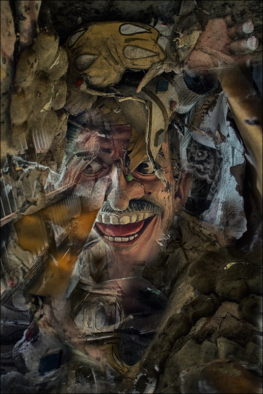 il viso era la foto che ho usato come base,poi ho usato altri scatti fatti nello stesso luogo come riempimento sovrapponendo i livelli e facendo uscire i particolari che mi servivano col pennello.