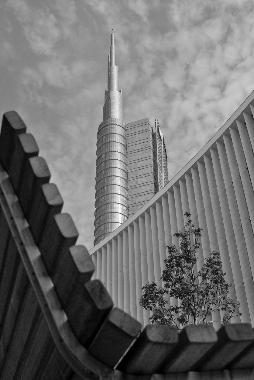 L'idea di far dialogare le linee parallele della panchina con quelle dell'edificio in primo piano, la trovo interessante.