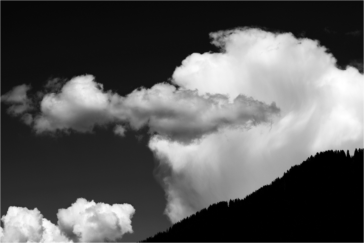 particolare e bella IMHO. direi 4 dinamiche ben delineate e volutamenta separate: cielo, nube centrale grigia, nubi bianche, silhouette.