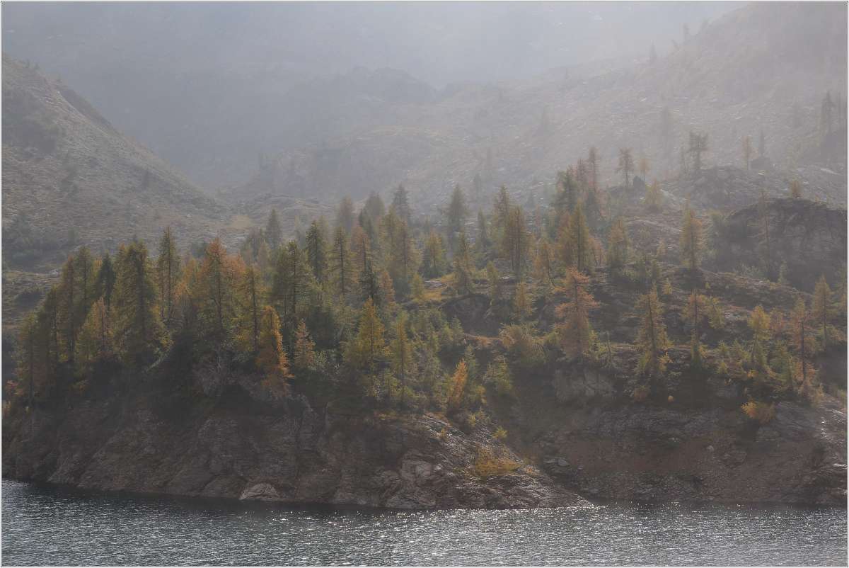 La superficie dell'acqua ha un bella tonalità argentea, ma in questo semi controluce, praticamente si lascia solo intuire. Certamente rimediabile in parte in post, aumentando il contrasto e rinforzando così anche un po' la saturazione.