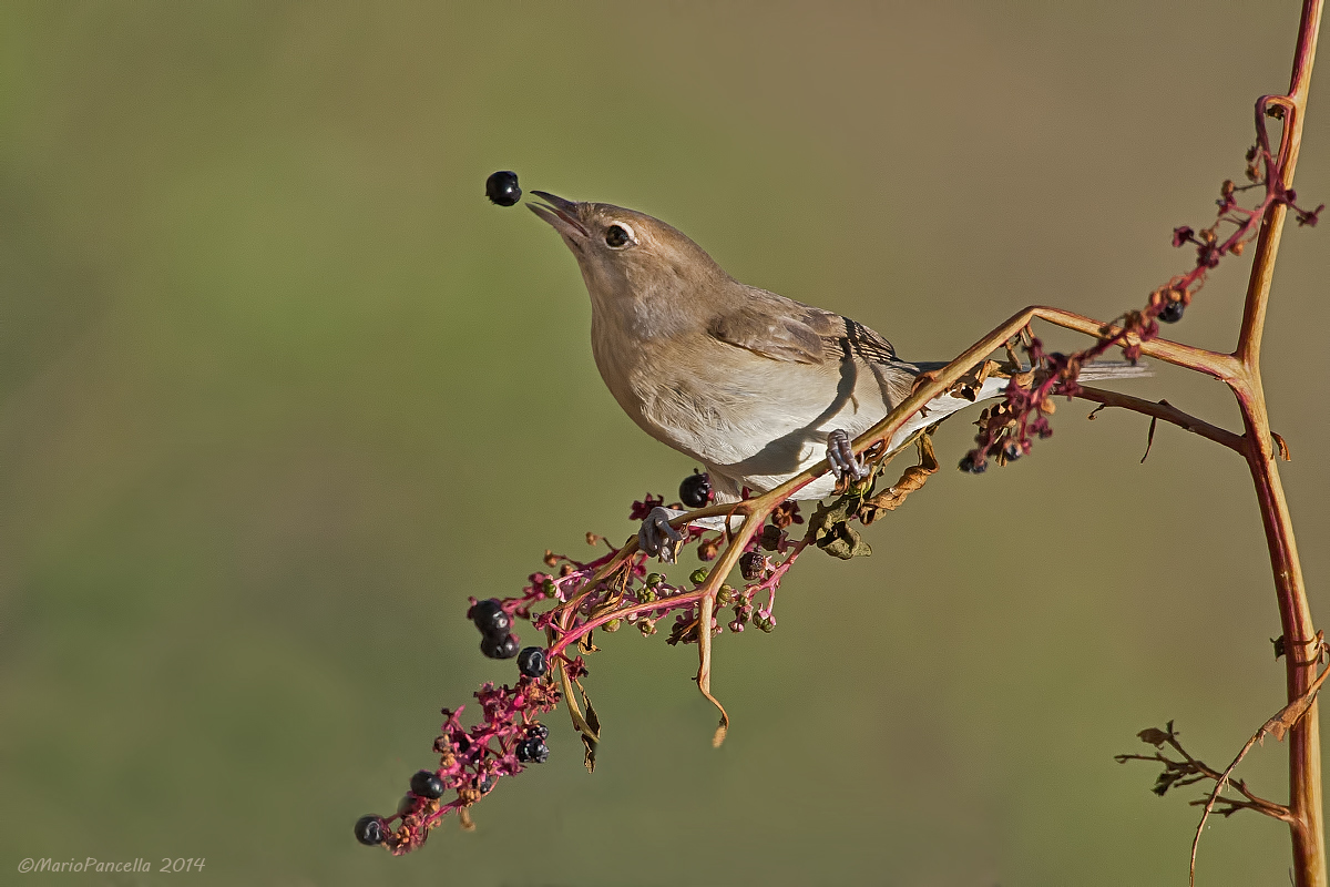 Hai scattato nel momento più azzeccato che ti poteva capitare, bellissima immagine del beccafico che palleggia con una bacca di Phytolacca americana, ottimi tutti i parametri un saluto, Arturo  |