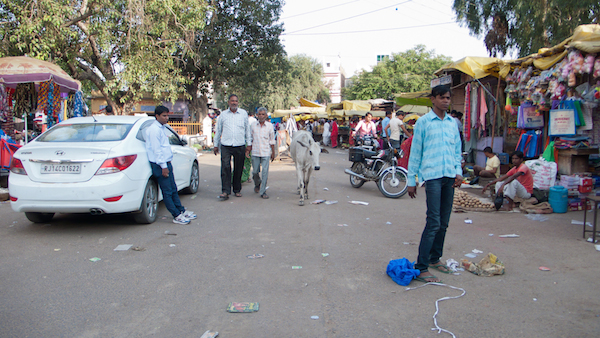 Per quanto inconsueta ai nostri occhi, credo che scene come questa siano piú che normali in India. Questo per dire che, se da un lato lo scatto presenta indubbiamente un certo interesse documentaristico (per noi occidentali), dall'altro non sembra aggiungere molto rispetto alla riproduzione di una normale scena di strada, dove in fondo non sta accadendo niente di strano.