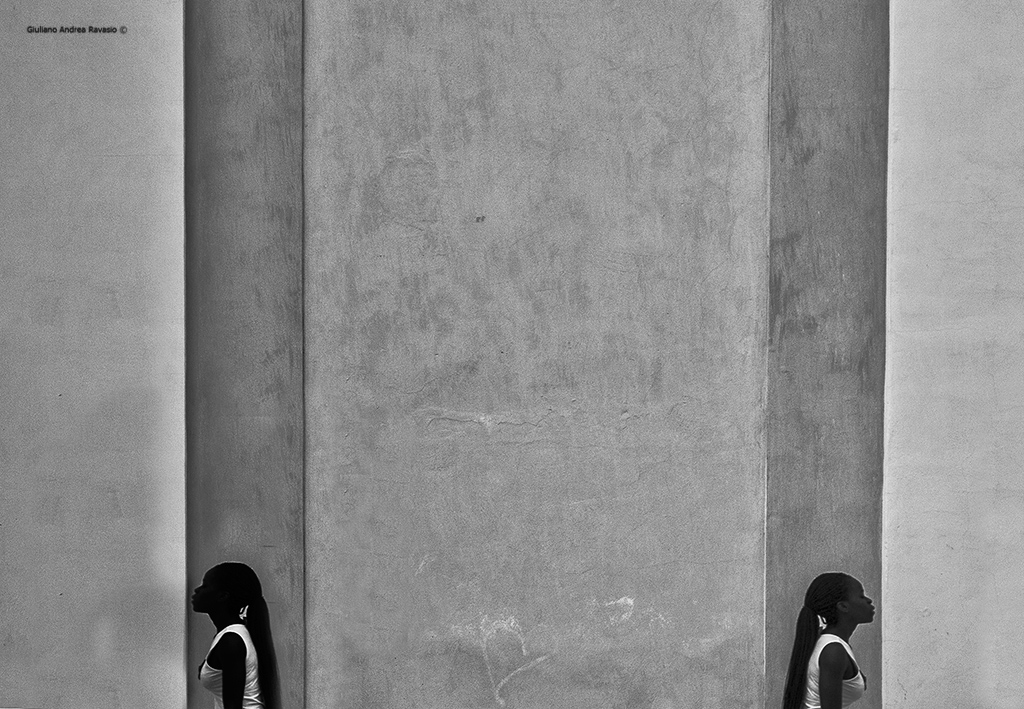 non c'è nussun ritagòlio e tantomeno una maschera di contrasto, in quanto le pareti sono originali si tratta di due finte colonne appkicate ad un muro molto rattoppato e pezzato, la tecnica . livelli immagine riflessa sovrapposizione e poi gomma sulle parti che non interessano. la sottoesposizione della ragazza di sx è voluta.Sai meglio di me che la fotografia è un arte che si presta ad una forte soggettività, c'è chi questa fotografia l'ha apprezzata parecchio non tanto per la perfezione tecnica di realizzazione, che so benissimo che non c'è, ma per il messaggio intrinsico che essa contiene.