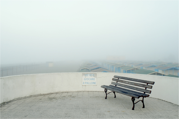 Evanescente, come un ricordo d'estate, che svanisce lentamente con le brume d'autunno. Resta in pp la certezza visiva del presente, con la nitida presenza della panchina disabitata, , del divieto che ormai prede significanza, al limite di un tempo già trascorso . Una delle tue più belle per me. Come la tenerezza di una illusione perduta. Fra le preferite.
