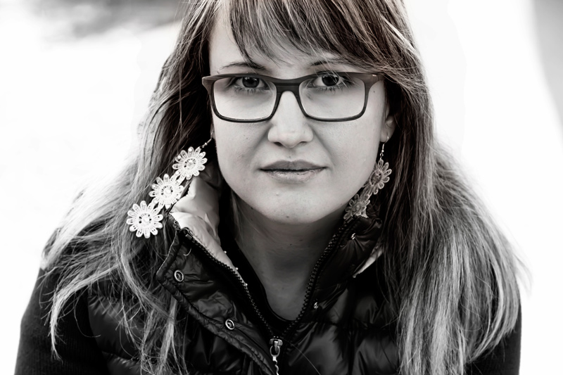 Bel ritratto, sguardo espressivo, bello il BN col tono caldo del viso, sfocato al punto giusto.