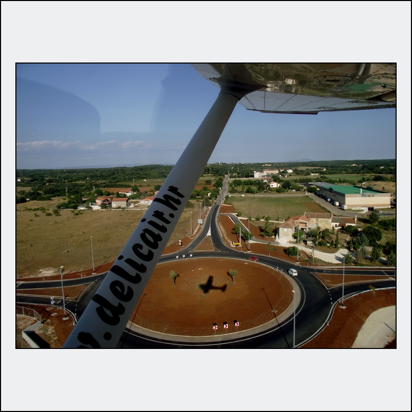 Un punto di ripresa molto privilegiato per questa rotonda che credo di conoscere e di avere più volte percorso.Notevole l'ombra del piccolo aereo proprio al centro.Complimenti per il colpo d'occhio!