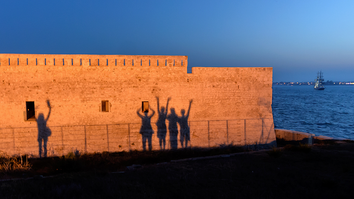 Bello e divertente questo siparietto dove le ombre salutano la nave in partenza.