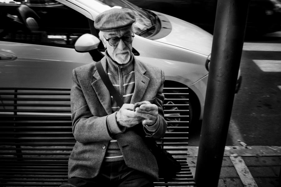 Ottimo scatto che,come tutti quelli che mostrano gli anziani alle prese con le nuove tecnologie,suscita tenerezza.Molto bello anche il bn. Smile