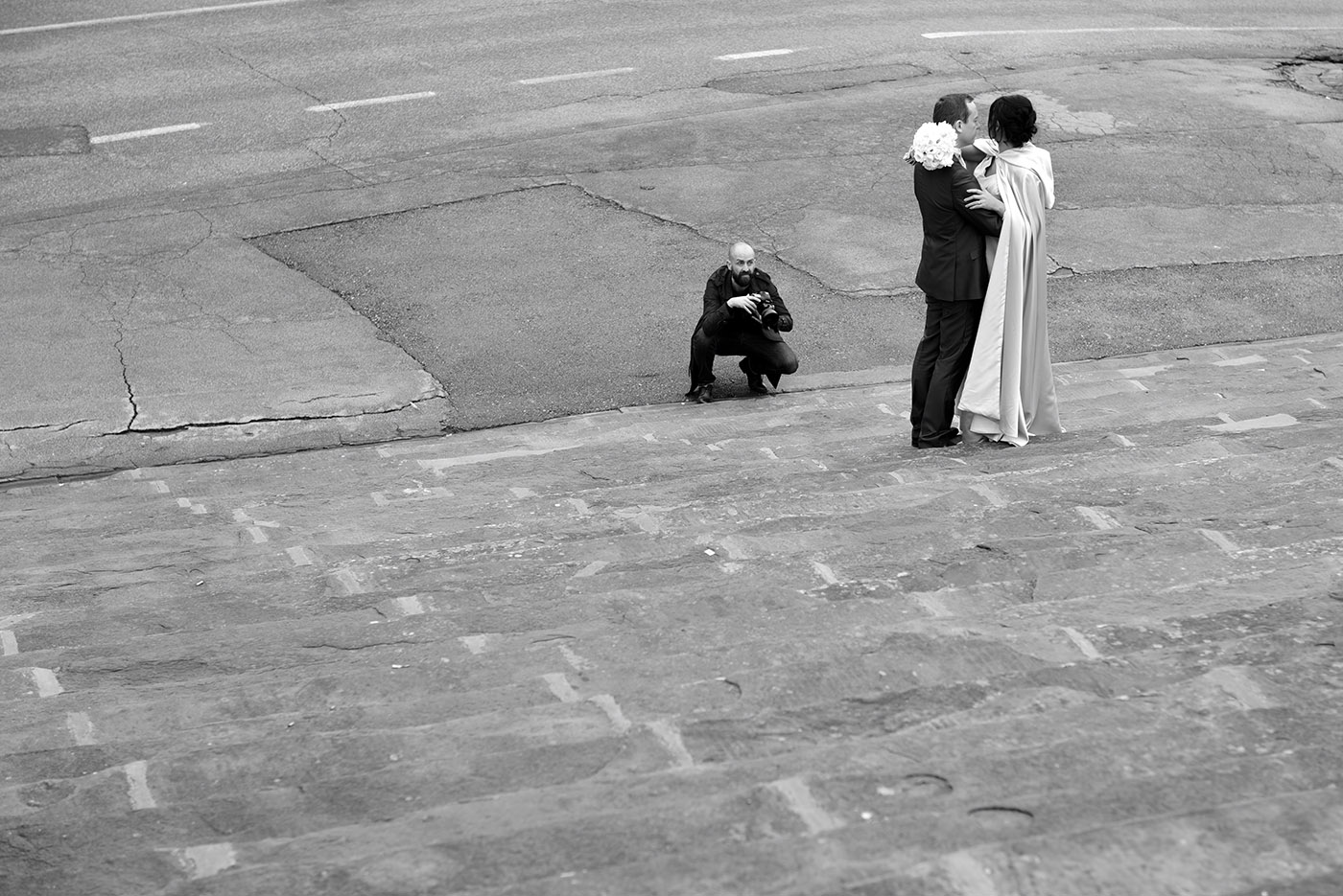 Tra l'altro un bianco poco convincente (vedi l'abito della sposa e il bouquet ), mentre a lasciarla a colori ha più valore quel ''un momento di felicità'' in tutto il grigiore della scena... |