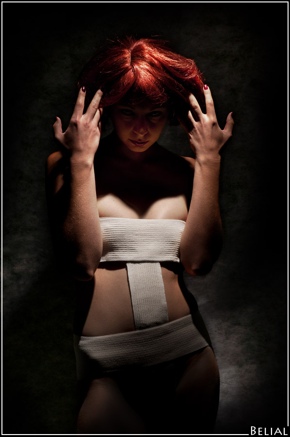 Hai scelto un'illuminazione sicuramente originale. Arriva però con troppa forza sul petto, rendendolo molto più chiaro rispetto alle altre zone illuminate dell'incarnato. Stesso discorso per alcuni punti delle mani che risultano quindi sovraesposti. Smile