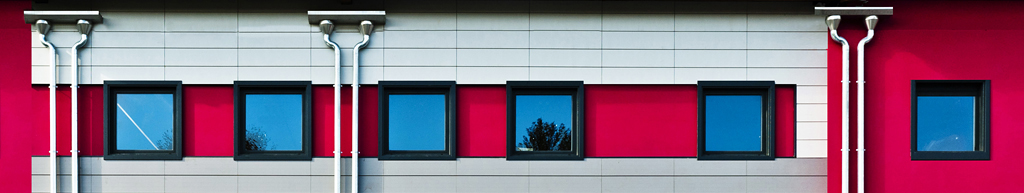 Molto bella, semplici figure geometriche evidenziate dai colori e dai riflessi, interrotte dai tre elementi verticali, come pause in uno spartito musicale.