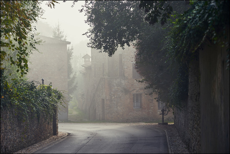 Concordo con Vittorio per una presenza umana ma trovo molto coinvolgente l'atmosfera con quella nebbiolina e le case di un borgo antico.