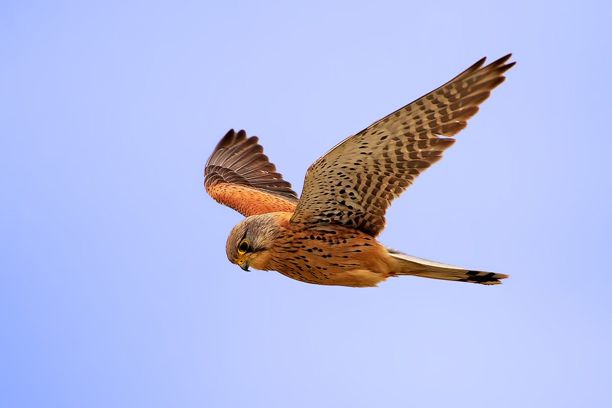 | Il Gheppio in volo è sempre bello da vedere,vedo una dominanante rossastra sul soggetto e il colore dello sfondo non mi convince.