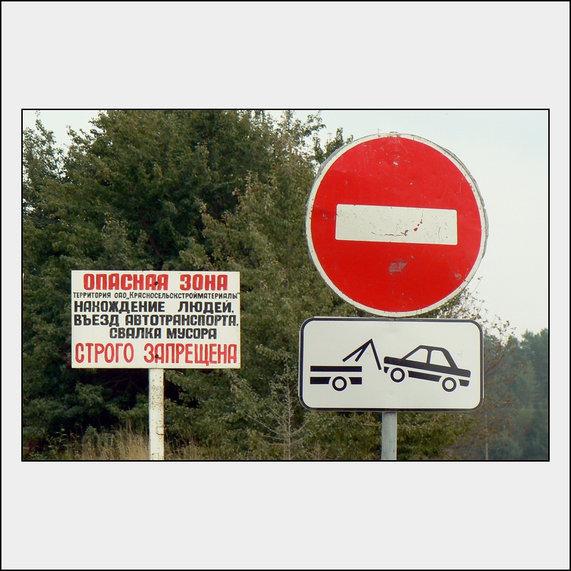 Lo scavo attivo lo abbiamo visto, ma una barra (seppure aperta) ed i soliti cartelli che, seppure in caratteri cirillici, sembrano abbastanza chiari ci hanno fatto pensare che non era il caso di proseguire, tanto più che già mentre facevamo inversione una jepp si è mossa verso di noi a forte velocità, può anche essere solo un caso, ma ...