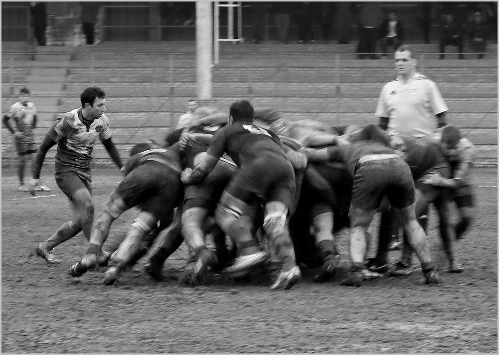 La classica mischia del rugby, ma qui è tutto un po' troppo mosso, anche lo sfondo. Forse se l'unico giocatore, quello a sinistra, che non è mosso, avesse avuto un ruolo di protagonista nell'immagine, l'interpretazione sarebbe stata diversa...ma non è cosi...scusa la franchezza  _________________ rik