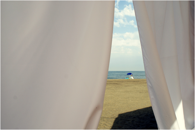 Foto minimalista, come del resto moltissime altre della tua galleria. Evidentemente è un genere a te congeniale. Qui il senso del silenzio sovrasta il solito fragore del mare. Peccato solo l'ombra della tenda che stona col resto della foto. Secondo me acquista più valore senza