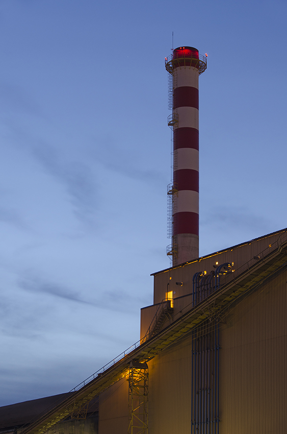 Davvero efficace la composizione, bellissima la diagonale che interrompe, se pur di poco, lo slancio verticale suggerito dal camino e dal fascio di tubi.