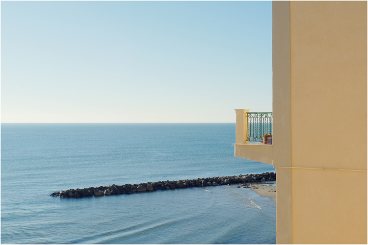 Gran bel gioco di linee per uno scenario altrimenti povero. A occhio credo che sarebbe stato meglio non includere quel piccolo lembo di sabbia sotto il balcone mantenendo la stessa struttura.