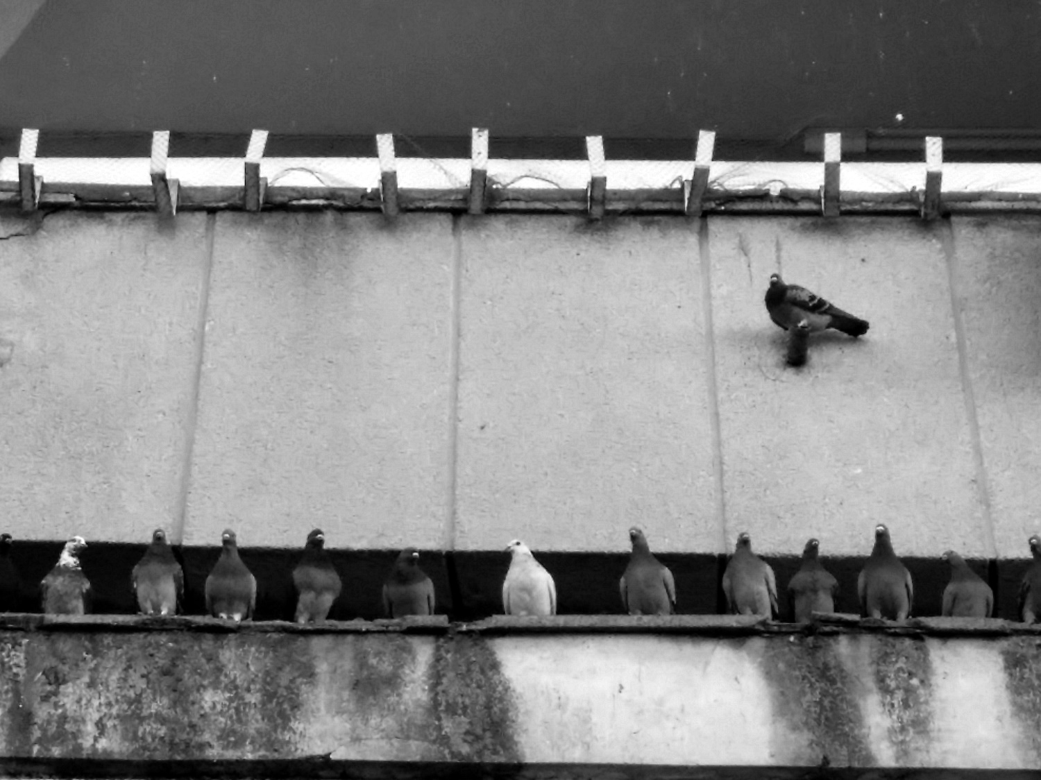 L'avrei intitolata "Lasciate ogni speranza o voi che passate" in relazione ai bombardamenti che spesso i piccioni compiono sugli ignari passanti.
