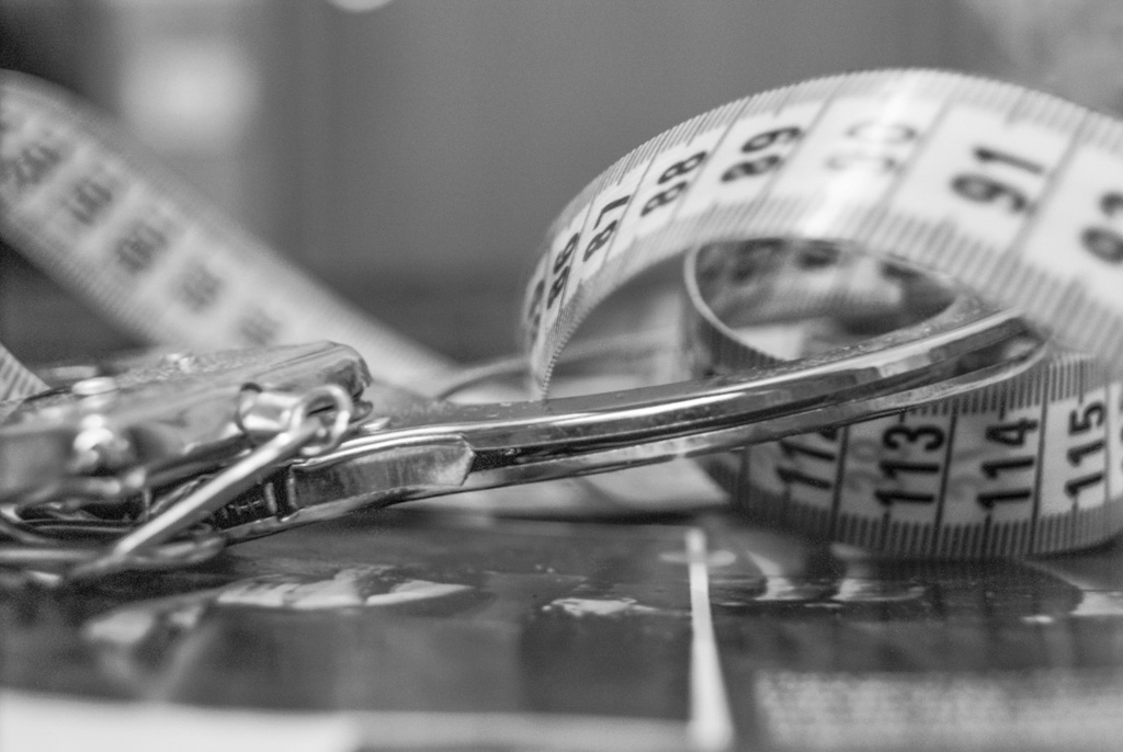 Forse non soi vede così bene ma il metro da sarta inizialmente è dentro un paio di manette e sopra una rivista patinata,che ti propina ,come tutti i media ,quella che dovrebbe essere le "perfezione":Perfezione che inizialmente mette in crisi la mente di un adolescente ma che in un secondo momento prende il sopravvento e reagisce mettendoselo sotto i piedi.Infatti sotto le scarpe verso la fine c'è quel metro ,quelle manette e quel giornale che inizialmente la incatenavano