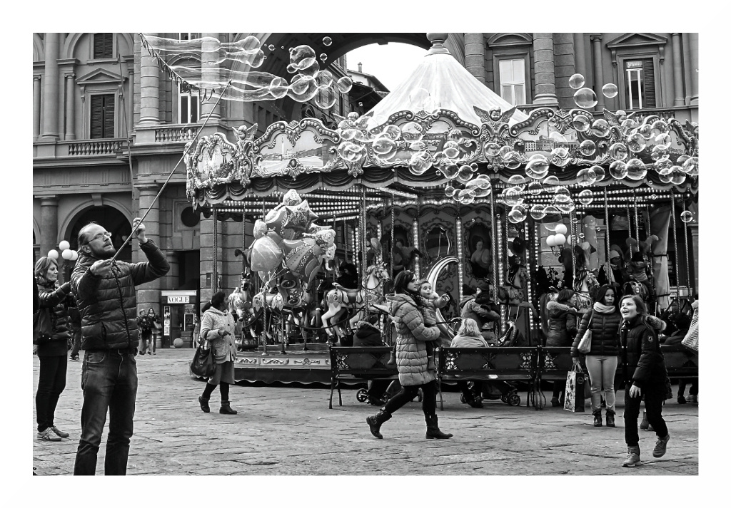 Per quanto riguarda la foto, purtroppo la giostra "rompe" un po' ma mi piaceva l'espressione della donna/ragazza in basso a dx..