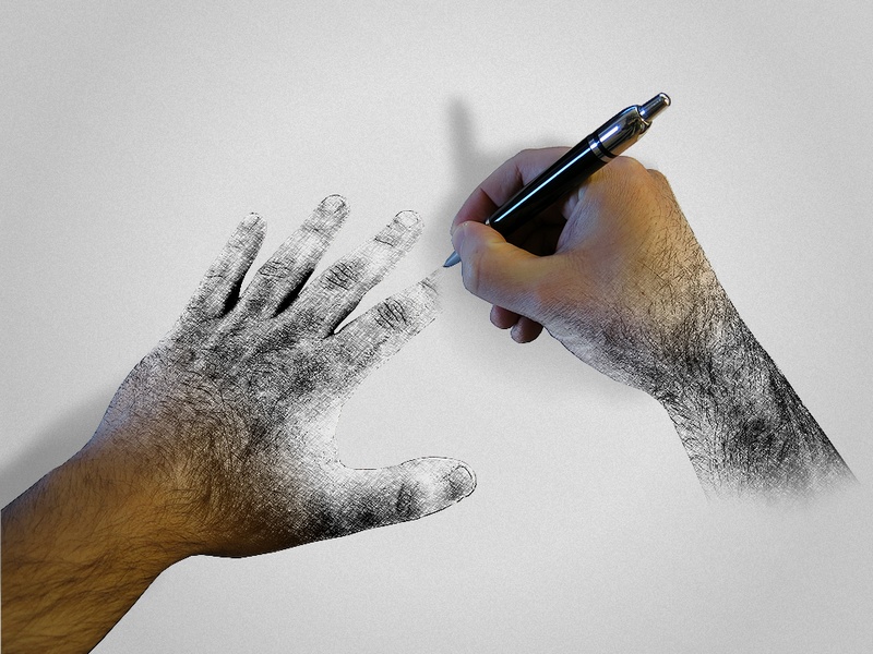 Idea come sempre ben realizzata la tua, vedo che i dettagli sono stati curati bene.. non c'è stacco tra mano reale e quella in divenire.. soprattutto perché non si capisce se è quella reale che si sta trasformando in quella disegnata o viceversa! Smile