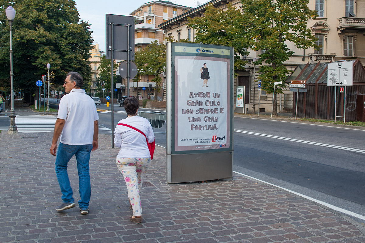 La foto è sicuramente una delle più riuscite accoppiate tra passanti e manifesti presentate ultimamente,