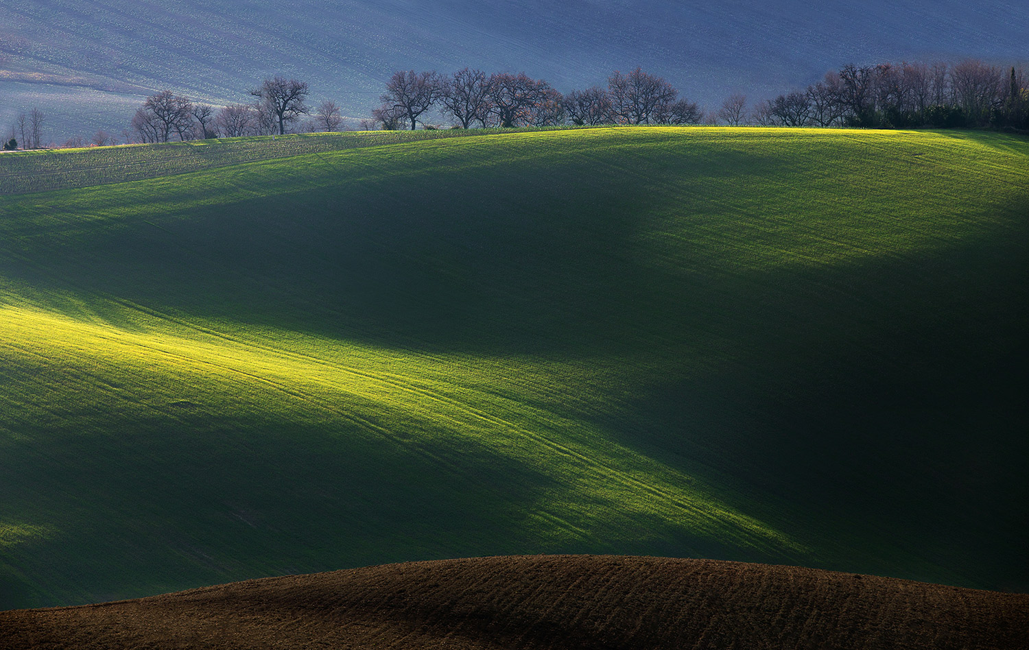 Chiaruscori e contrasti cromaci eccellenti. In questa forse manca un punto d'interesse importante, anche se le magnifiche trame vellutate del prato e del campo arato, da sole, possono sostenere l'immagine. _________________ Fiorenzo Carozzi