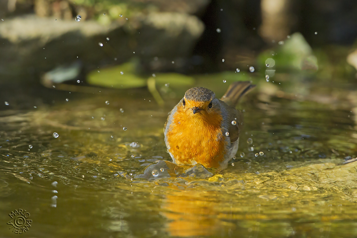 molto simpatico questo pettirosso che fa il bagnetto ! bello scatto Mario